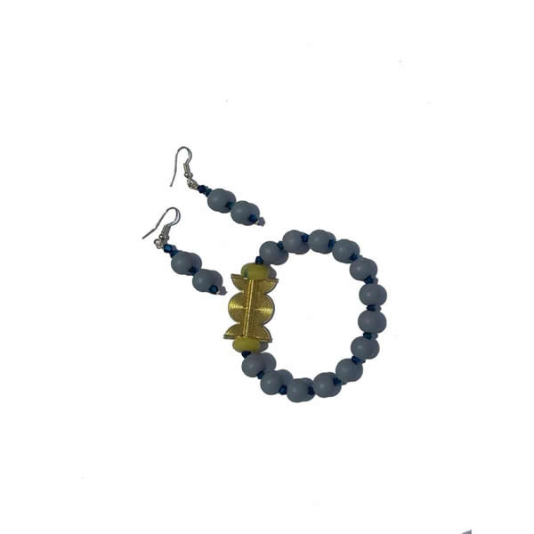 Boucle d’oreille: Cette boucle est un mélange de pois traditionnel AKAN et de perle de Couleur bleu turquoise et jaune. Agréable à porter avec des tenues de soirée et de détente. Aussi ses belle couleur donne un éclat de joie.